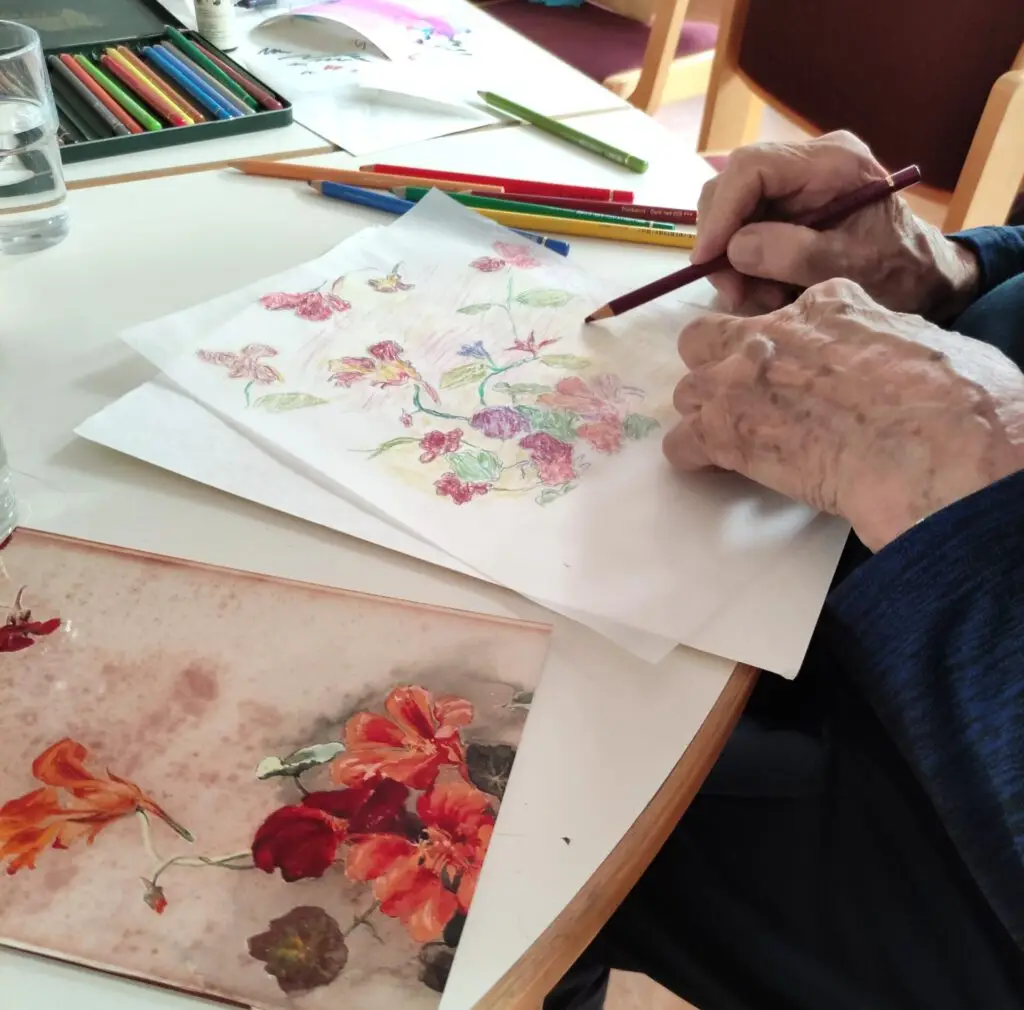 Als zertifizierte Kulturgeragogin ermutige ich ältere Menschen bis ins hohe Alter, sich kreativ auszudrücken – ob durch Biografisches Schreiben und Gestalten, kreative, gestalterische Workshops, Kunstbetrachtung vor Ort und im Museum oder intergenerationelle Projekte, bei denen Alt und Jung gemeinsam kreativ werden. Wichtig sind Freude am Entdecken, der Moment des Erlebens und sich zu trauen, selbstbestimmt die eigene Ausdruckskraft zu finden.